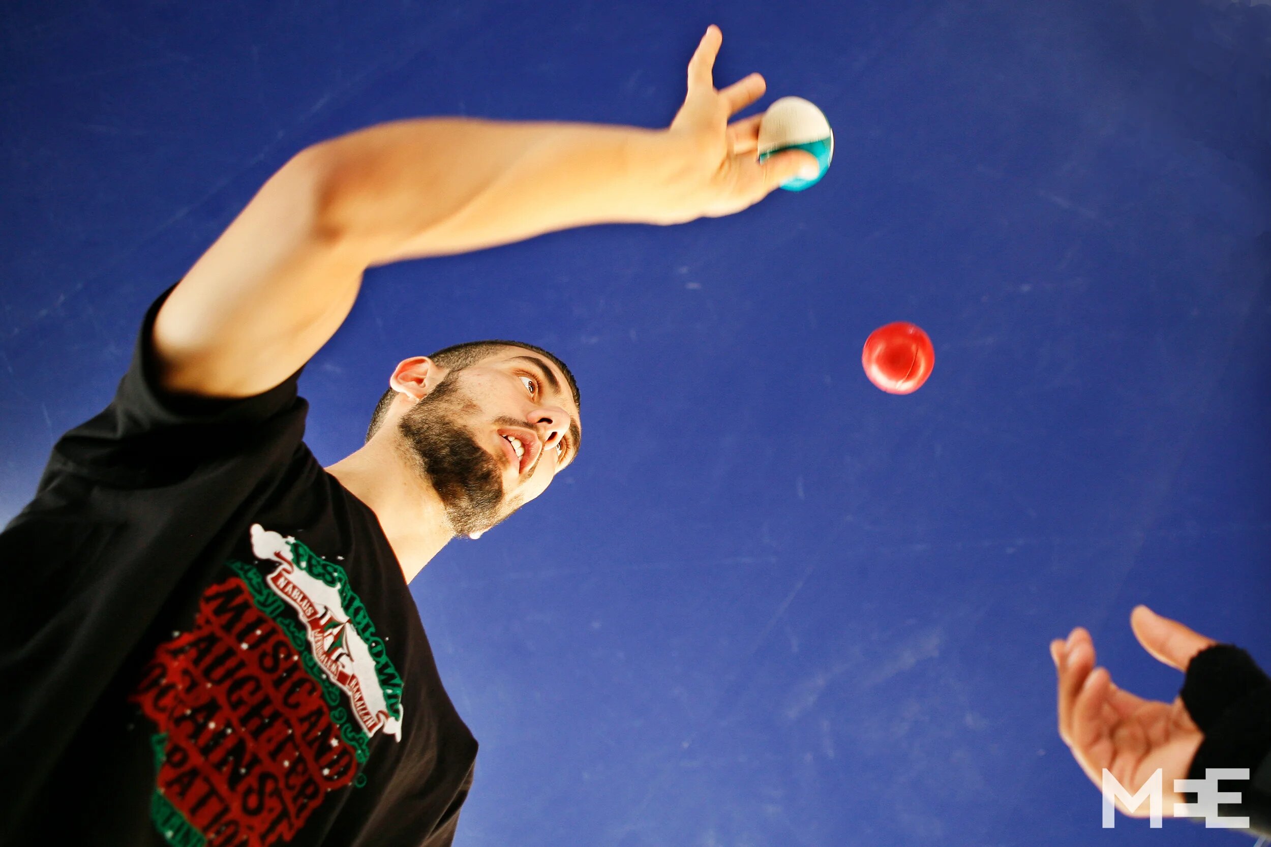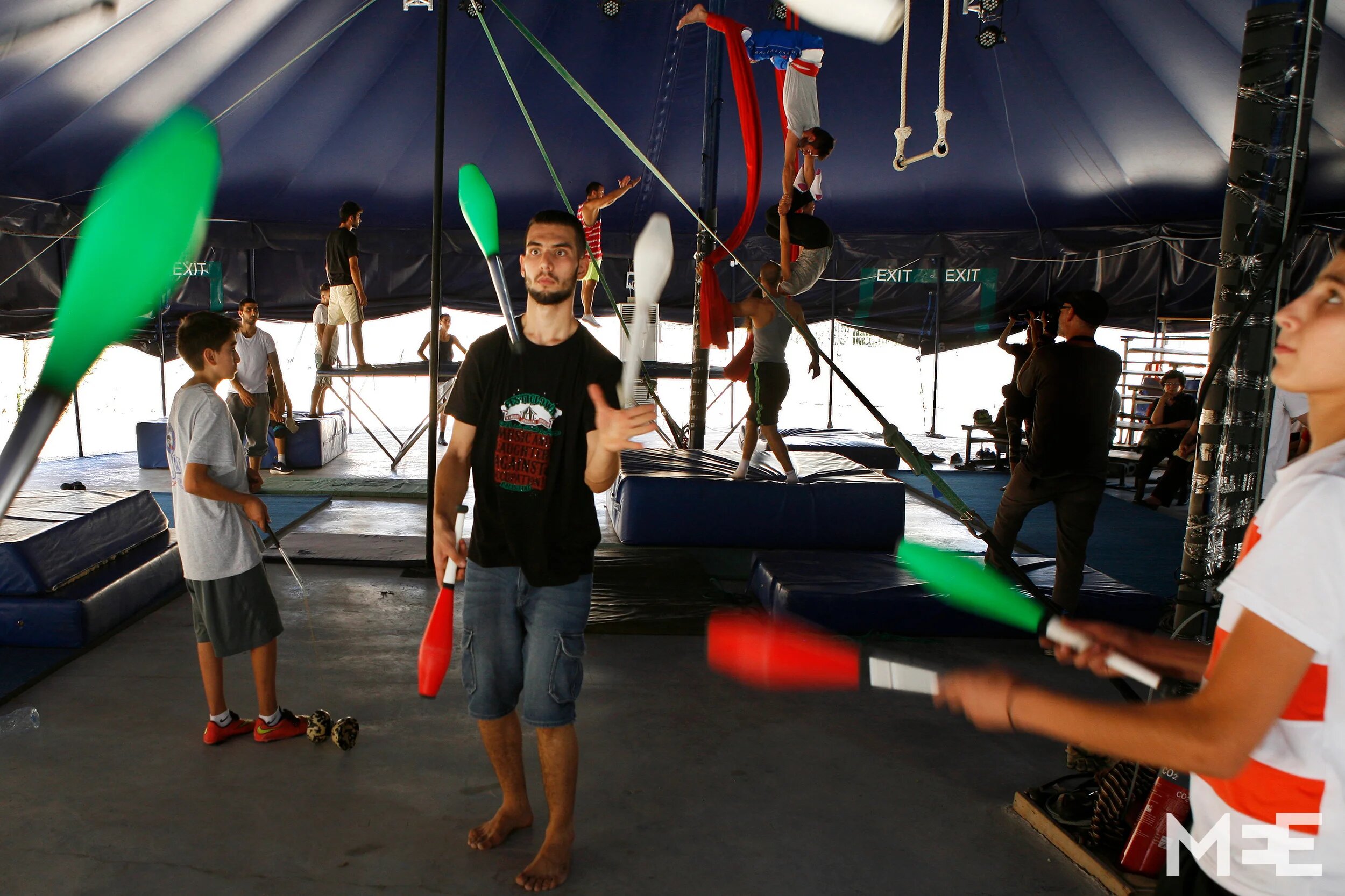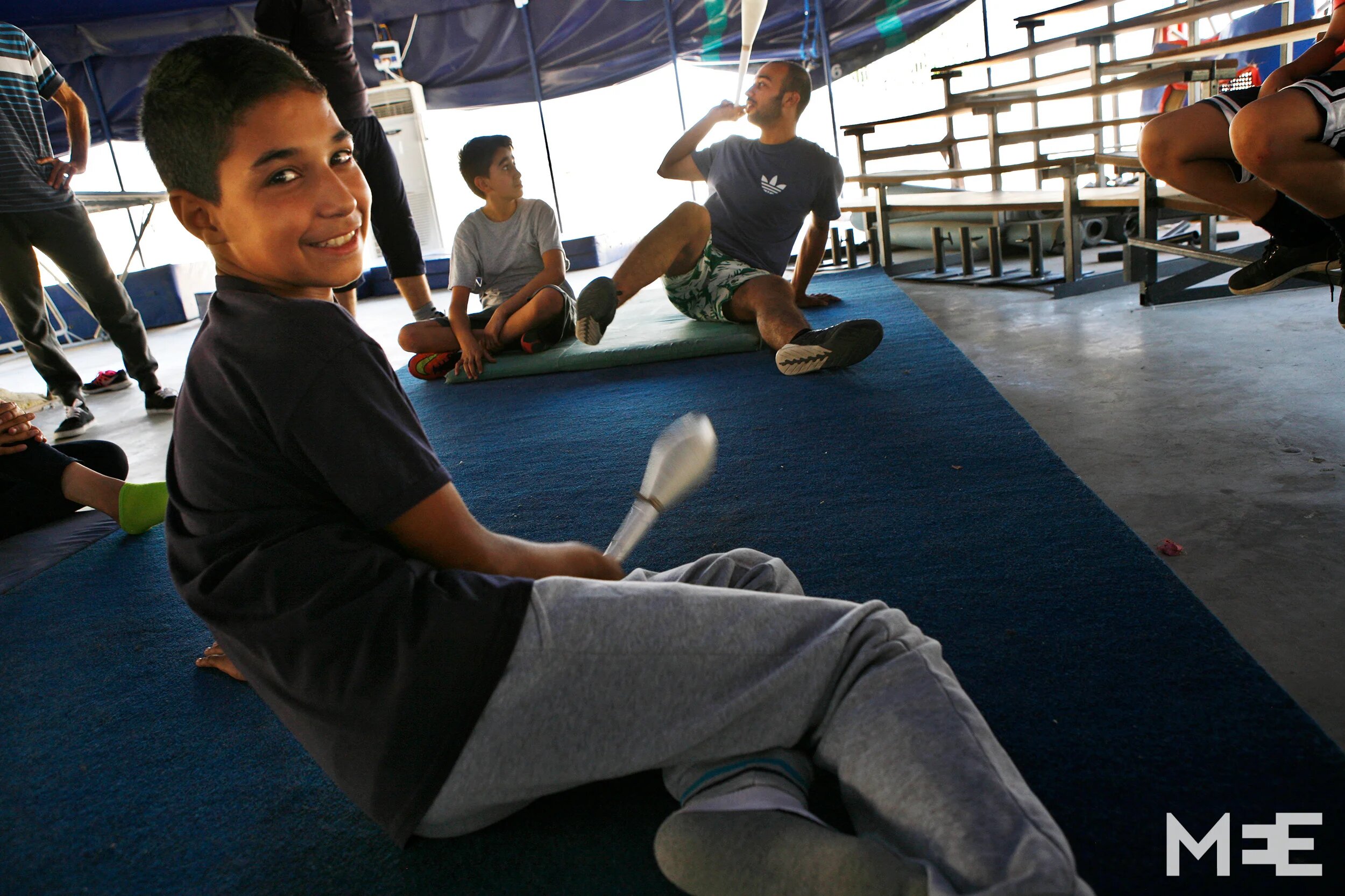 Hamada Toqan began juggling in 2007 with the Palestinian Circus school. Here he trains young students. (MEE/ Silvia Boarini)
