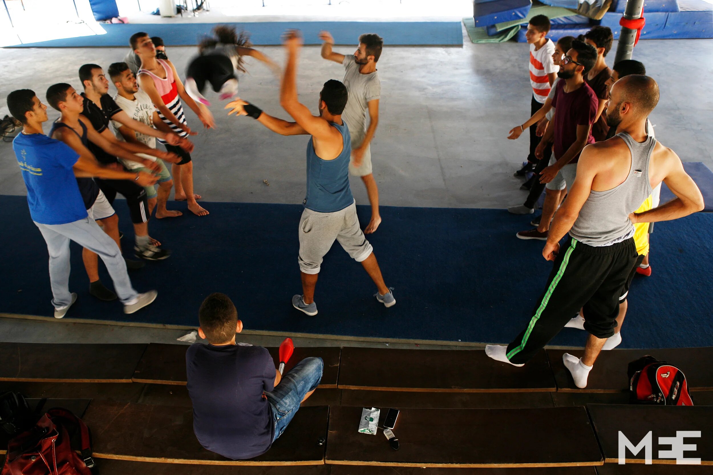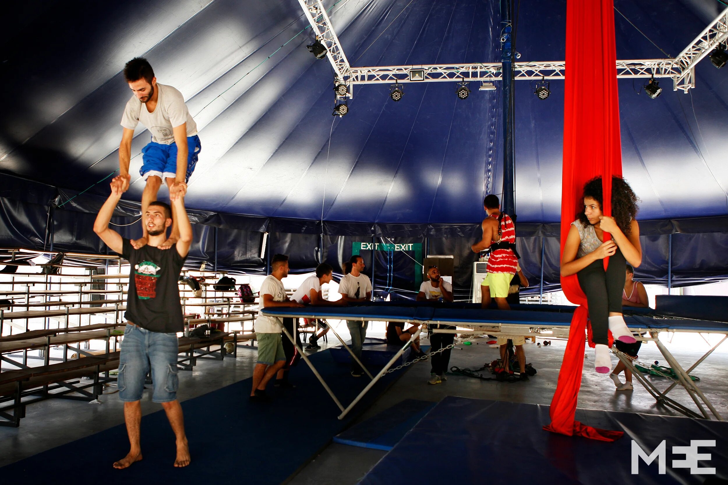 The team practices an acrobatics routine for an upcoming show. (MEE/ Silvia Boarini)