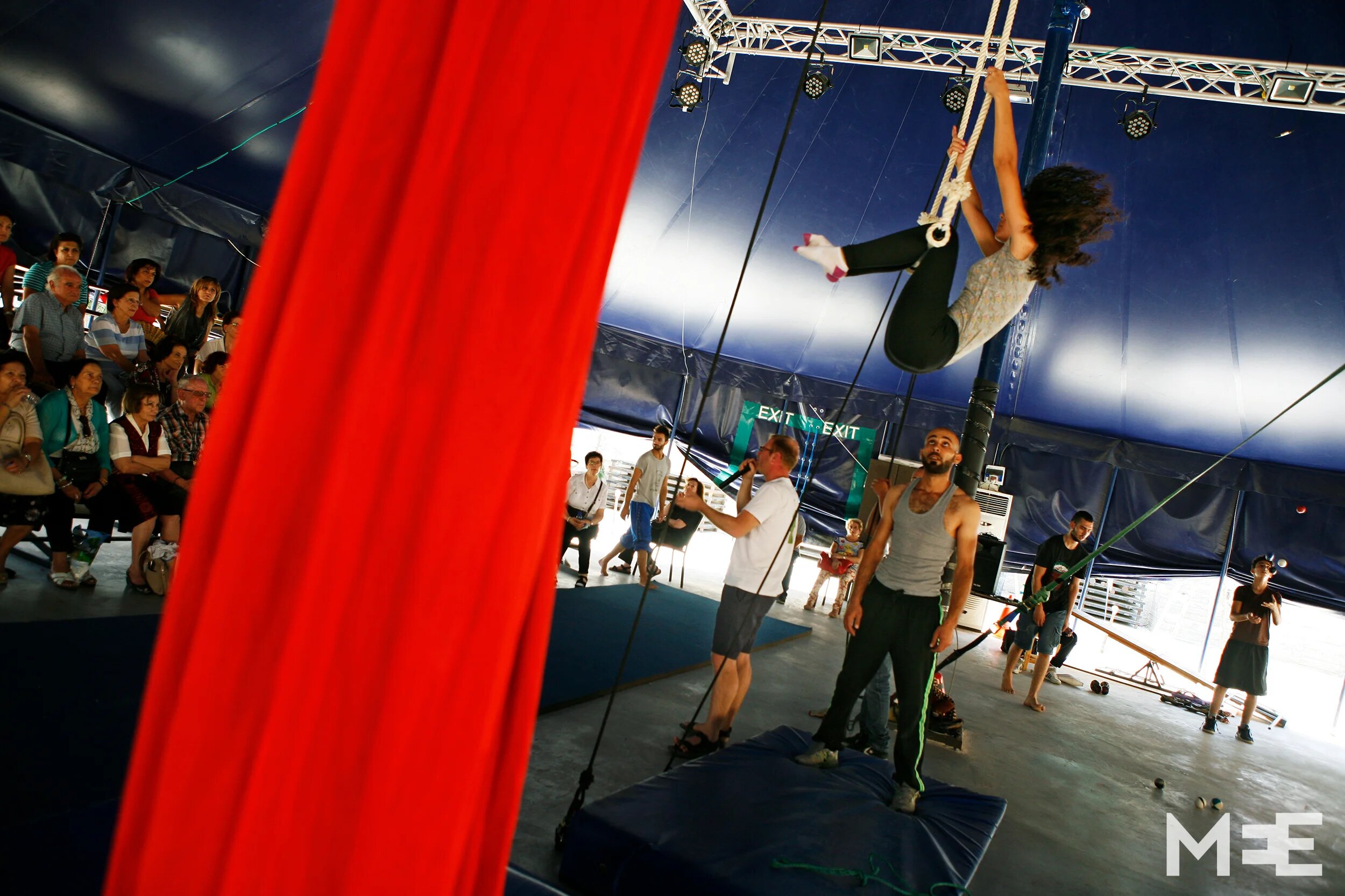 Hazar Azzeh on the flying trapeze. (MEE/ Silvia Boarini)