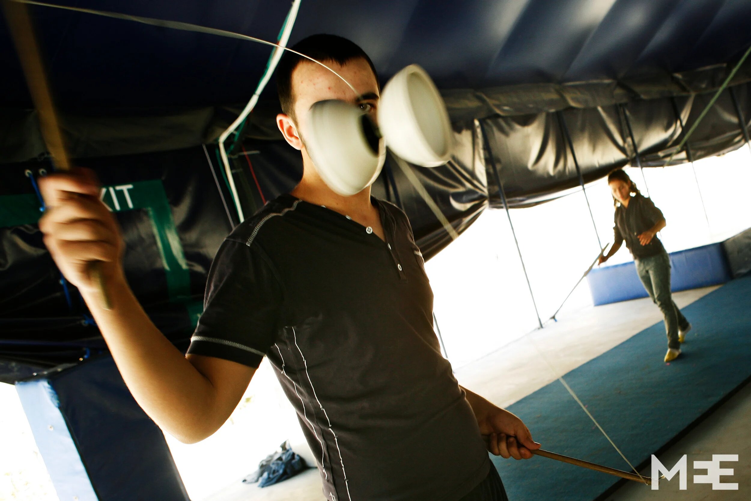A student practices devil sticks juggling, also known as ‘Diablo’. (MEE/ Silvia Boarini)
