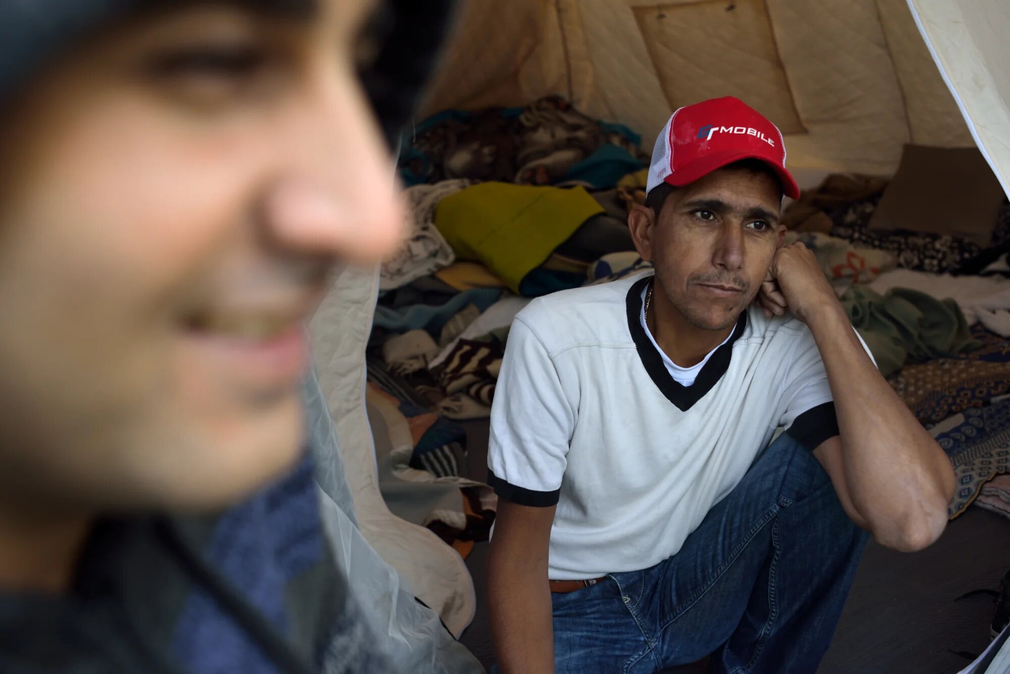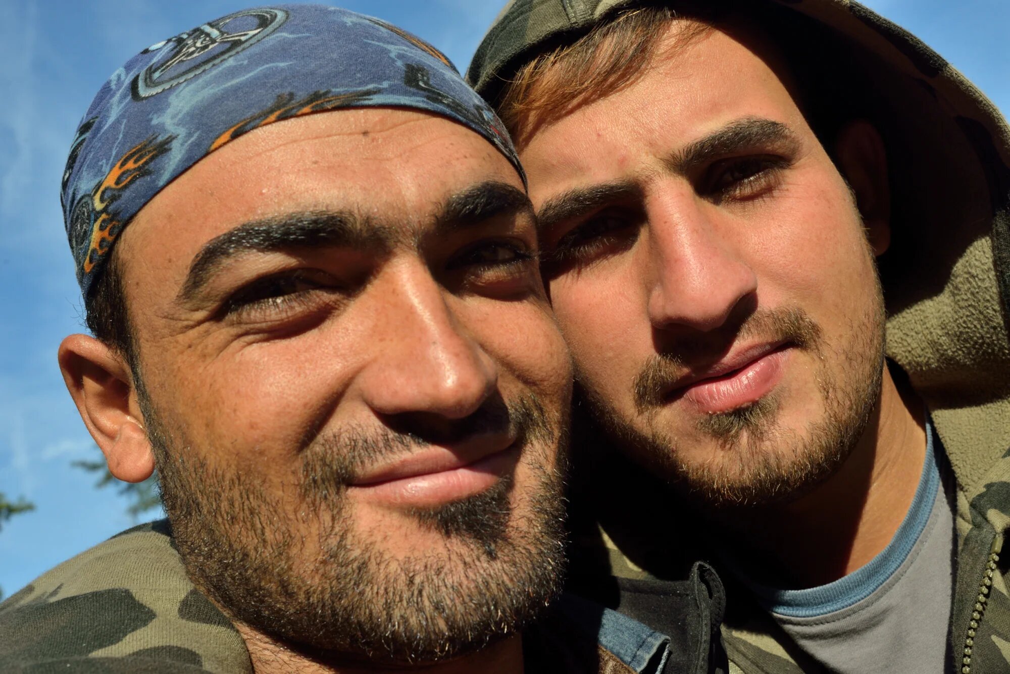 The man on the left side is a Kurd from Kobane. He came here alone and spoke Arabic and Kurdish. Hassan (right) comes from Baghdad. He plans to bring his family from Iraq to Europe. (MEE / Jerzy Wierzbicki)