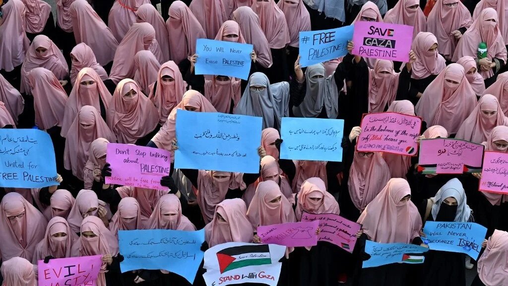 In Lahore, a massive demonstration took place on Mall Road, organised by the political party Jamaat e Islami Pakistan, which saw a significant turnout of women and children. Participants waved an enormous Palestinian flag during the event.