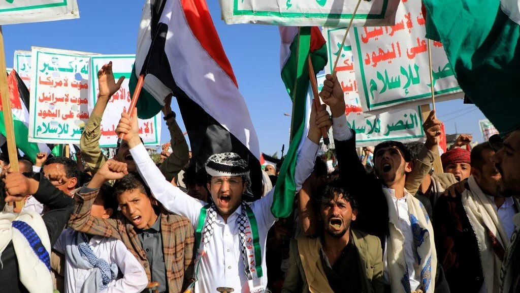 In Yemen's Sanaa, under the control of the Houthi rebels supported by Iran and still battling a coalition led by Saudi Arabia, protesters filled the streets, brandishing both Yemeni and Palestinian flags.