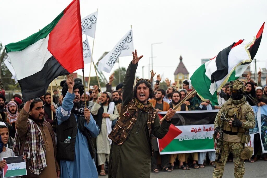 In front of the Eid Gah mosque in Kabul, in Afghanistan, Afghan protestors take part in a demonstration after Friday prayers in support of Palestinians.