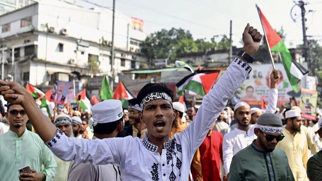 In Dhaka, thousands gathered together after the Friday prayer to show their support for the Palestinian cause.