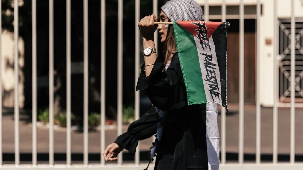 A young activist holds a Palestinian flag during a demonstration in support of Palestine in Durban, South Africa.