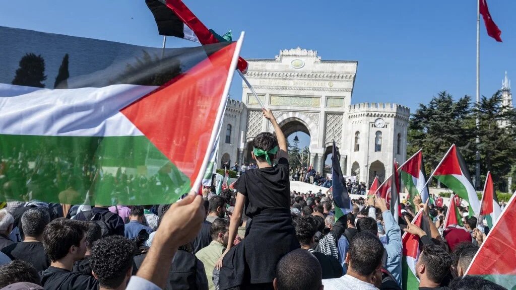 Thousands of protestors demonstrated outside Istanbul University in Turkey to show solidarity with the Palestinian people.