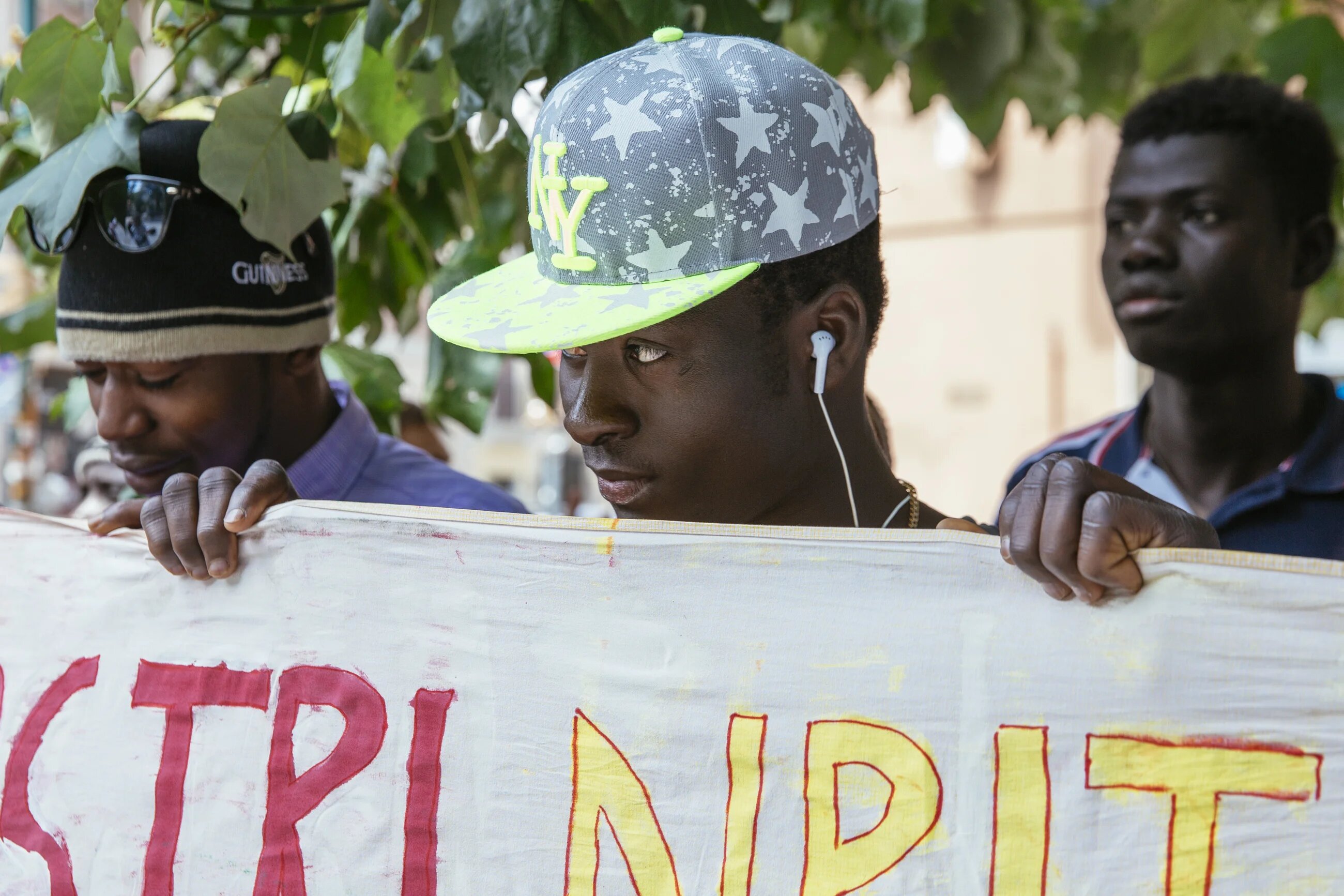 Migrants from Sub-Saharan Africa protest poor conditions slow asylum applications in Sicily (MEE/ Franceso Bellina)