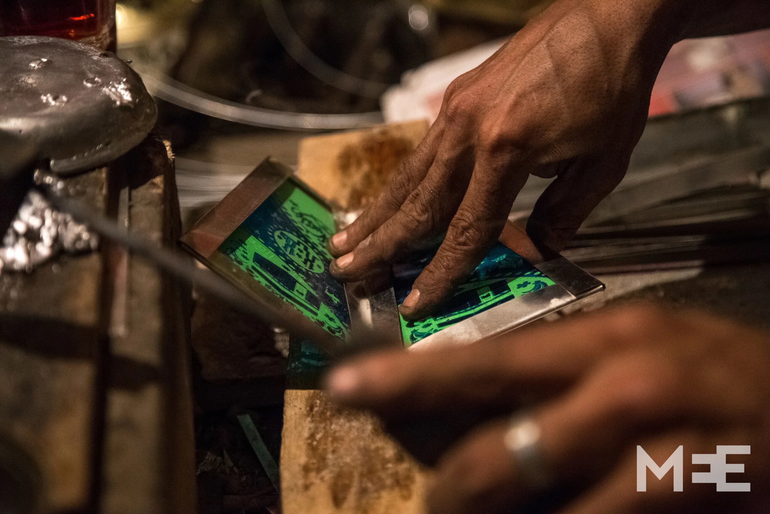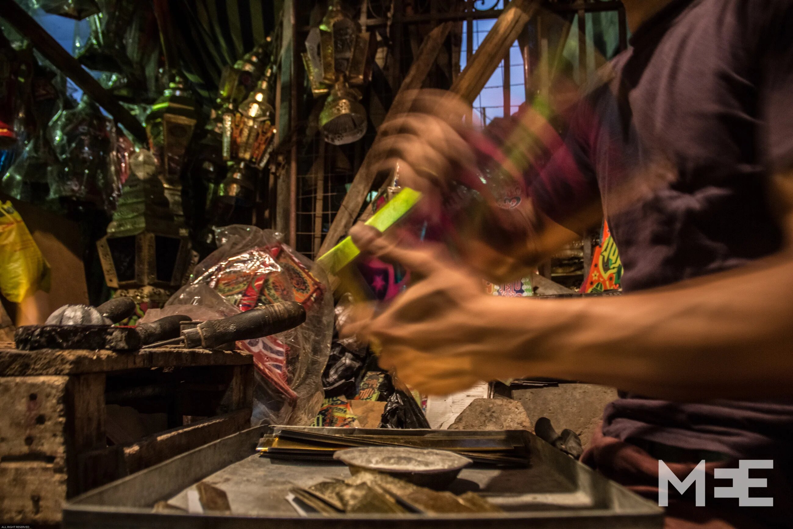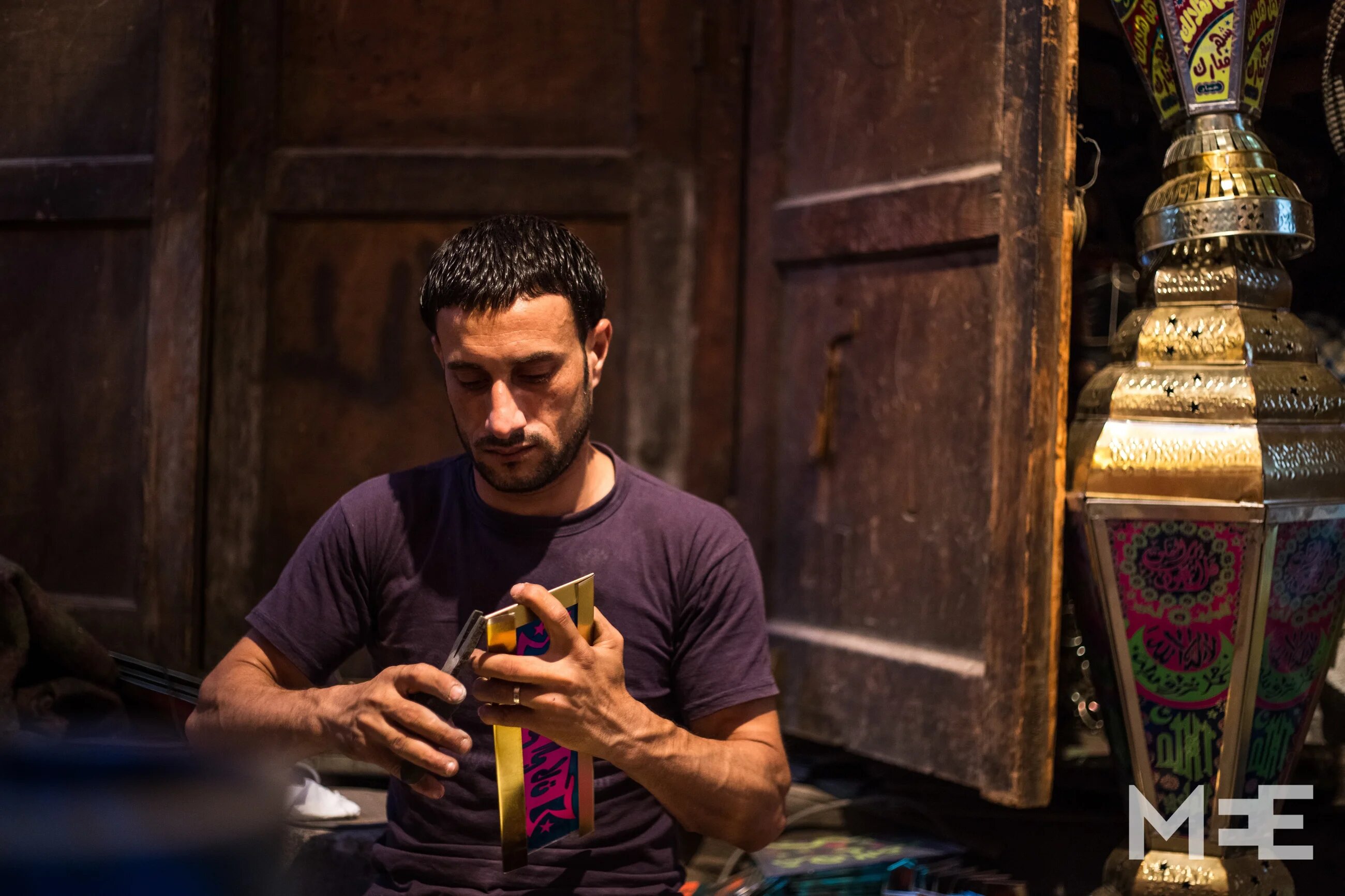 Thirty six year old Mohamed Abd El Rehim owns a small workshop at Bab El Khalk neighborhood. Here he is working on manufacturing a hand-made Fanous (MEE/Belal Darder)