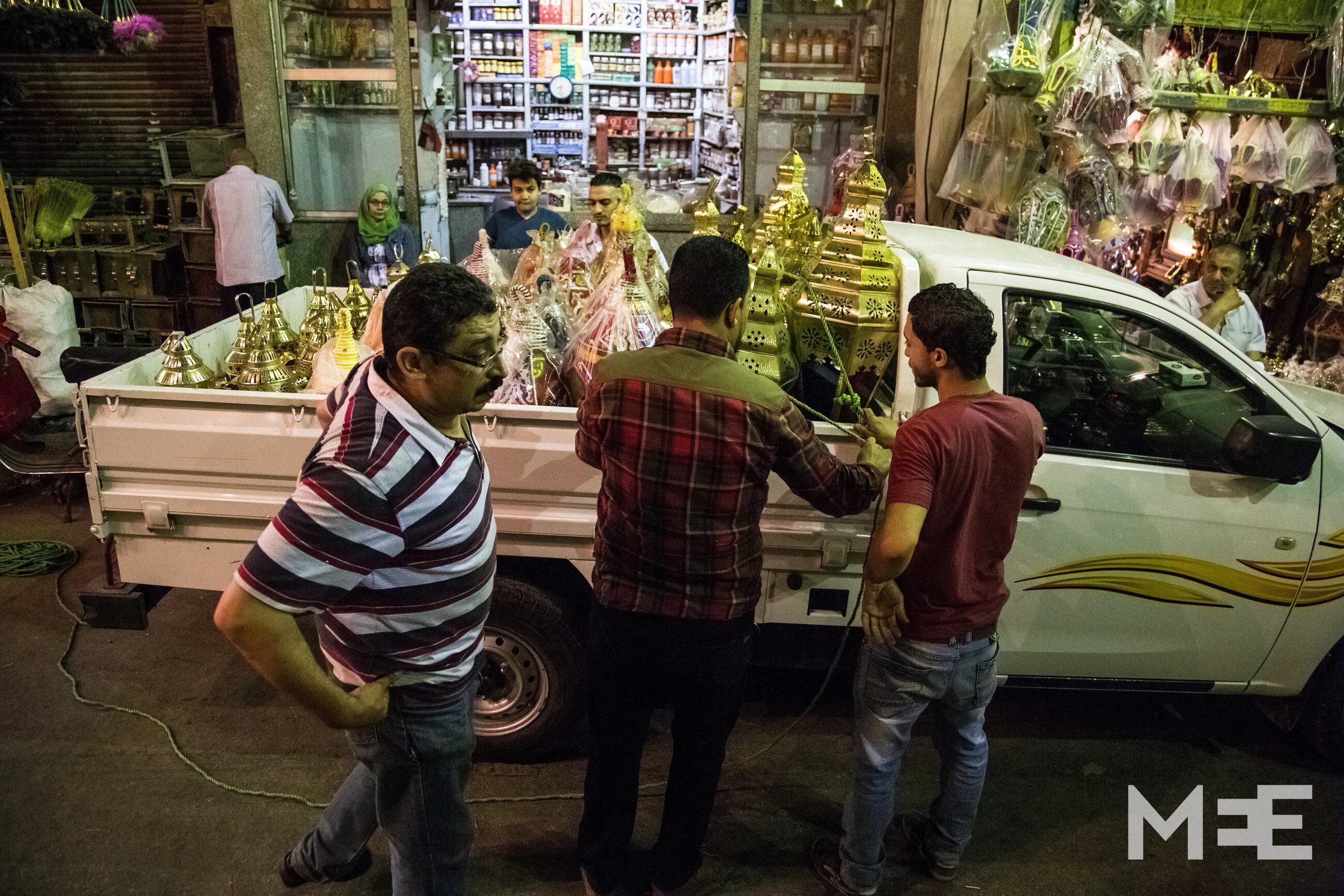 A fanous vendor piling Fwanis in his car, after buying them from Mohamed Abd El Rehim (MEE/Belal Darder)