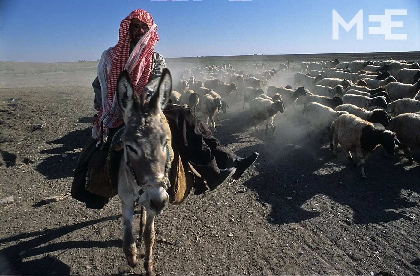 Arab shepherd with the sheep captured in Al Jazira in north-east part of Syria. September 2008