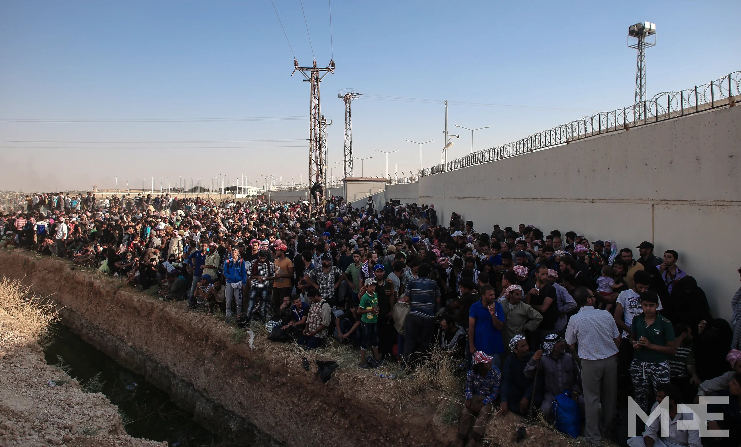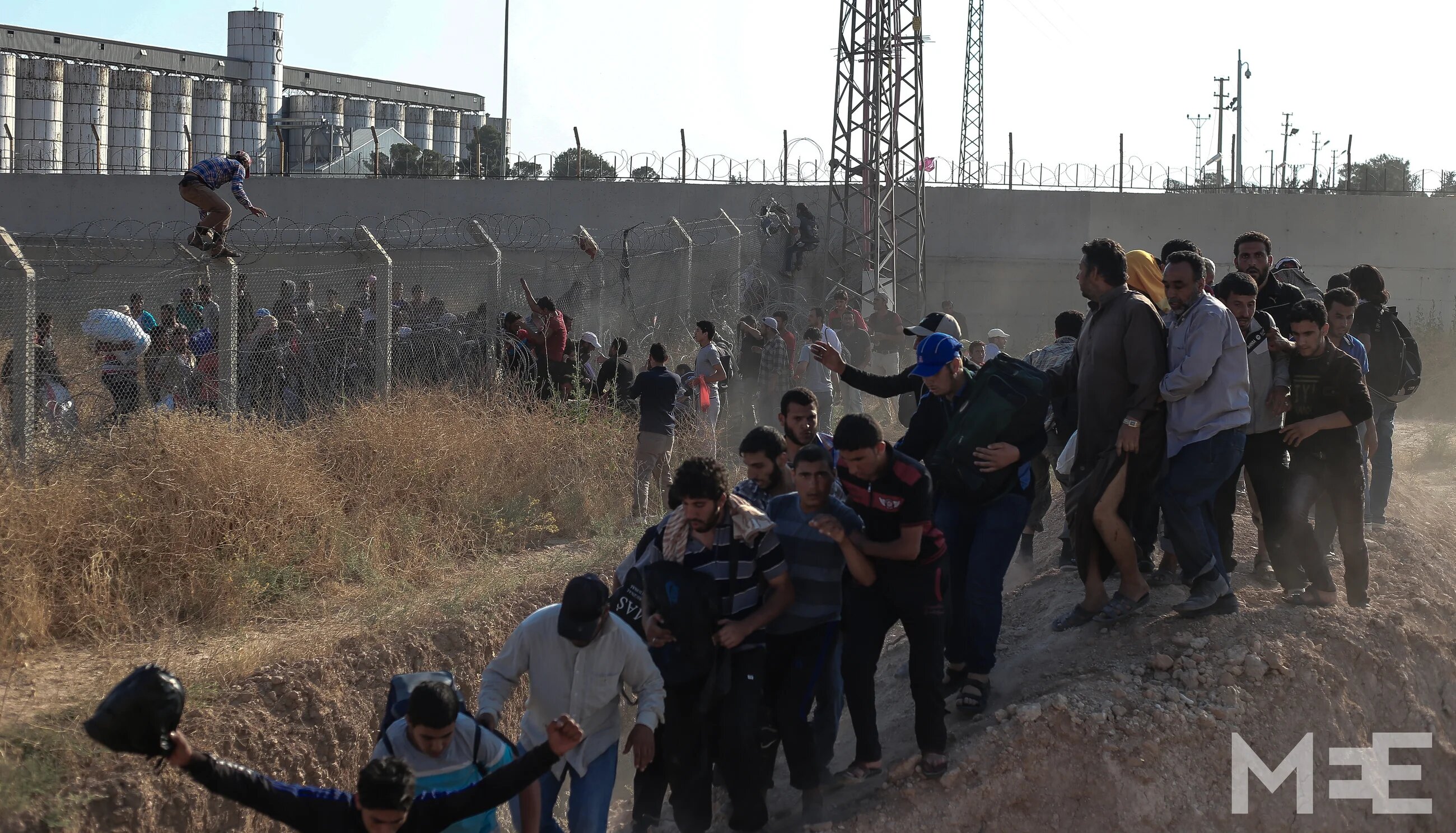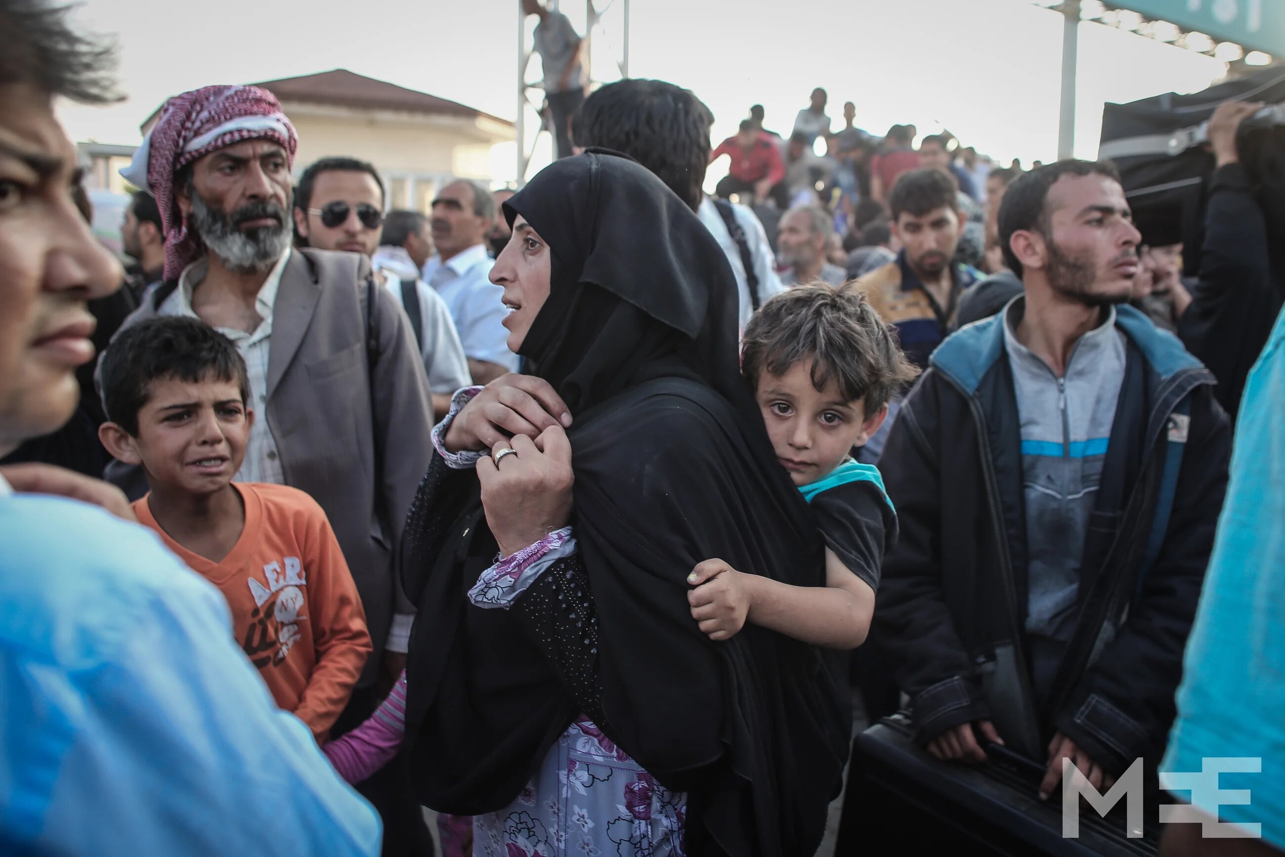 Syrian refugees flee to the Turkish border to escape fighting as Kurdish forces advance to the outskirts of the Syrian town of Tal Abyad, held by the Islamic State (MEE/Ibrahim Khader)