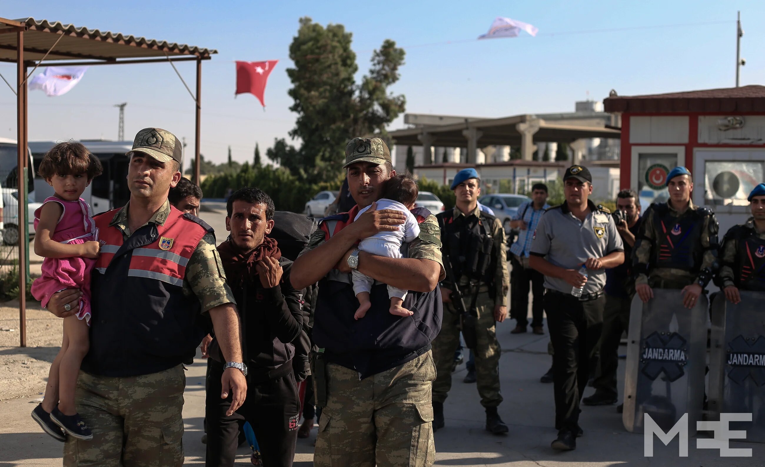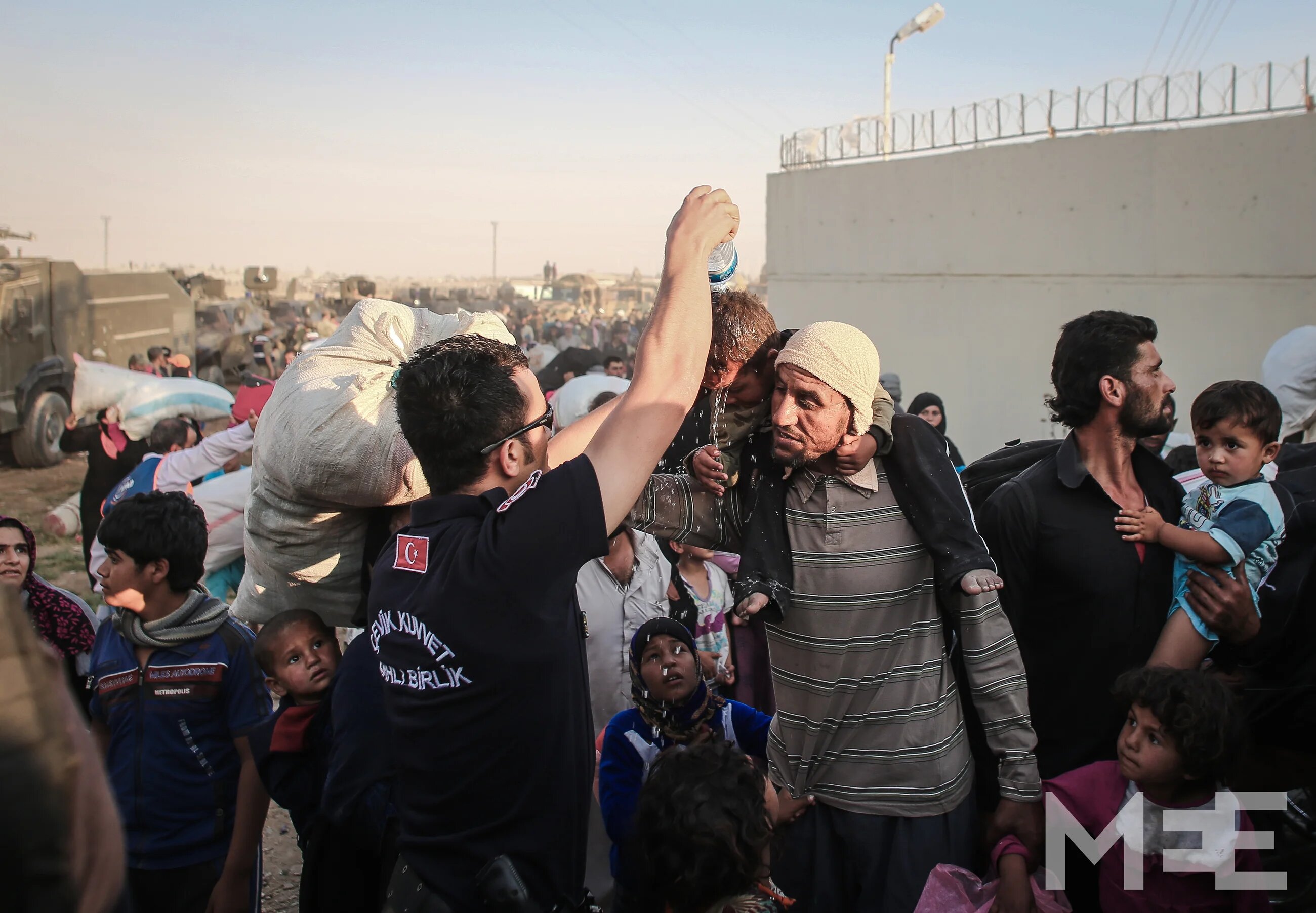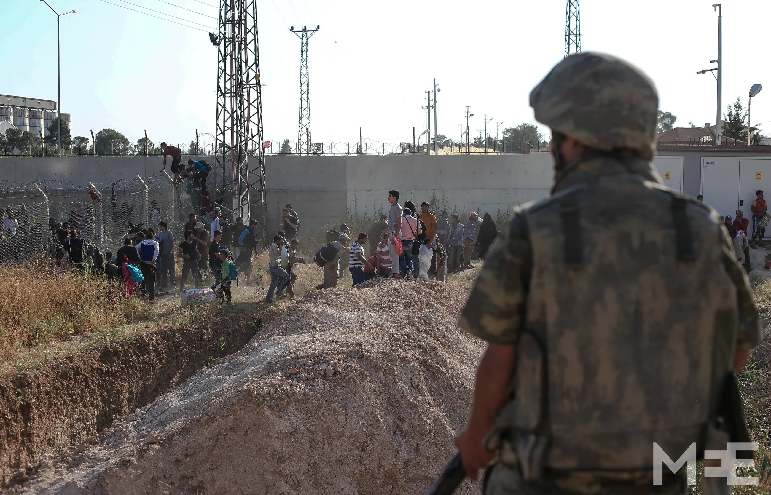 Syrian refugees flee to the Turkish border to escape fighting as Kurdish forces advance to the outskirts of the Syrian town of Tal Abyad, held by the Islamic State (MEE/Ibrahim Khader)