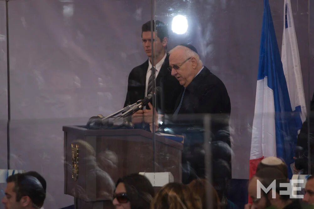 Israeli President Reuven Rivlin at Tuesday's state funeral (MEE/Oren Ziv)