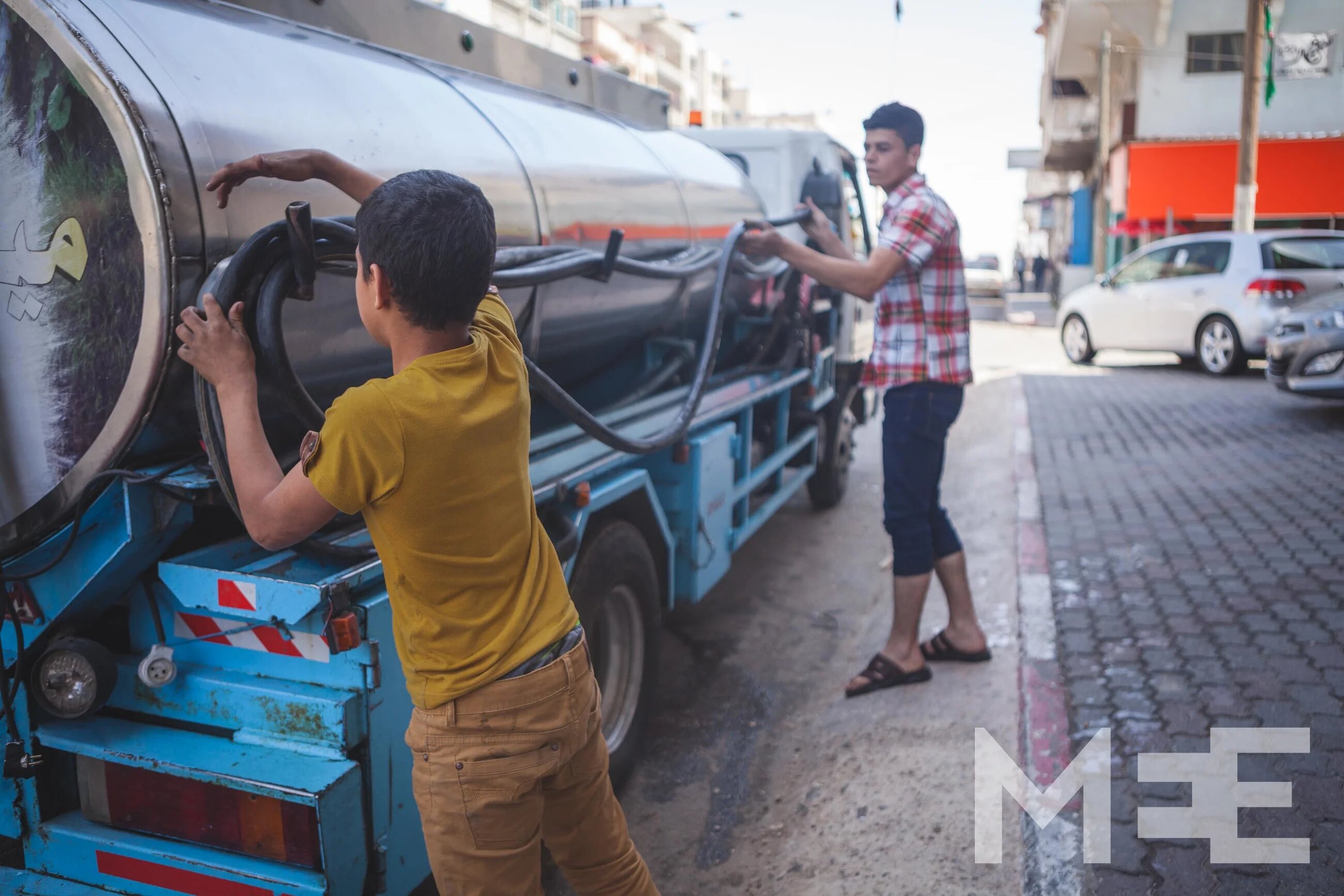 According to the UN, 95-97 percent of the water in Gaza is undrinkable in 2015. This forces families that can afford it to buy expensive water from private companies that are delivered by trucks throughout the Strip (MEE/Andrea DiCenzo)