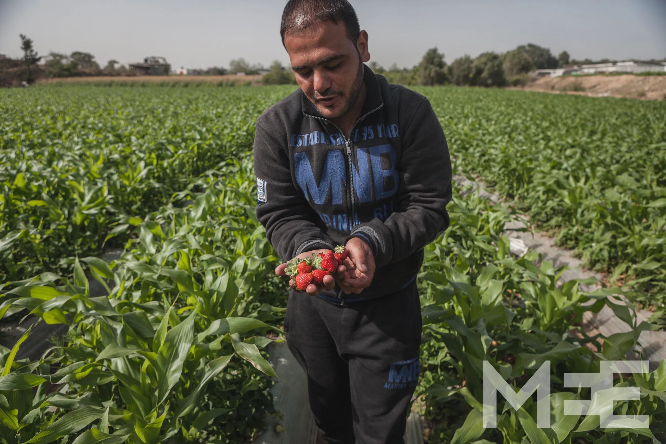Mohammed al-Shafe, 28, works on his family farm in the outskirts of the northern city of Beit Layla (MEE/Andrea DiCenzo)