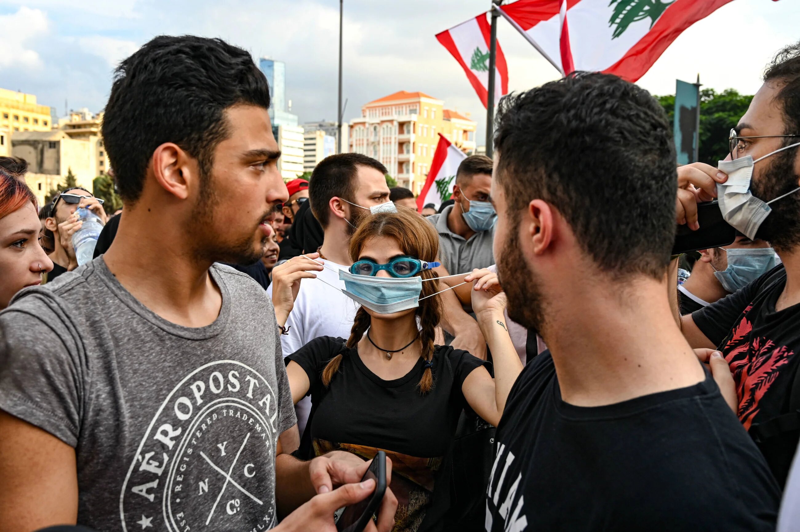 A protester prepares herself for a possible tear-gas attack by donning a face mask and swimming goggles. Security forces have used tear gas as one of their primary methods of crowd control (MEE/Finbar Anderson)