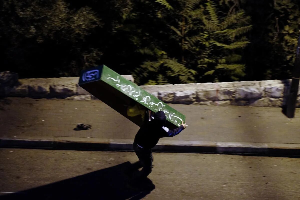 As evening descends, protesters in Silwan carry a mock coffin for Abdel Rahman Shaludi, whose funeral has been postponed over Israeli restrictions (AA)