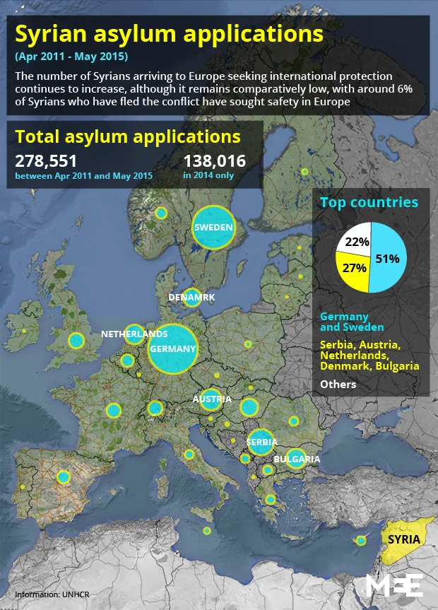 Asylum applications of Syrian refugees in Europe