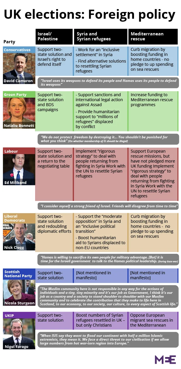 A rundown of where UK parties stand on key MENA issues