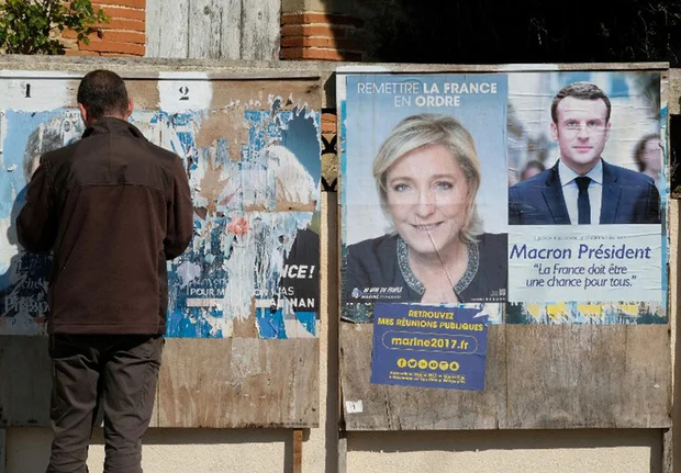 Arrivé en tête au premier tour, Emmanuel Macron, 39 ans, ancien banquier d'affaires et ex-ministre de l'Économie du président sortant François Hollande, était donné largement favori par les sondages qui le créditaient dans la journée de 61,5 à 63 % des voix, contre 37 à 38,5 % pour sa rivale Marine Le Pen, 48 ans.