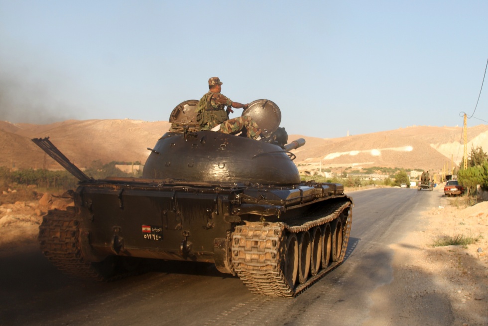 A Lebanese army's tank drives to the entrance of the town of Arsal in the Bekaa valley by the Syrian border on August 2, 2014 (AFP)