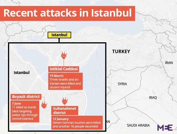 At least three Israelis and an Iranian were killed in a 19 March bombing on Istanbul's main Istiklal shopping street which was also blamed on IS.