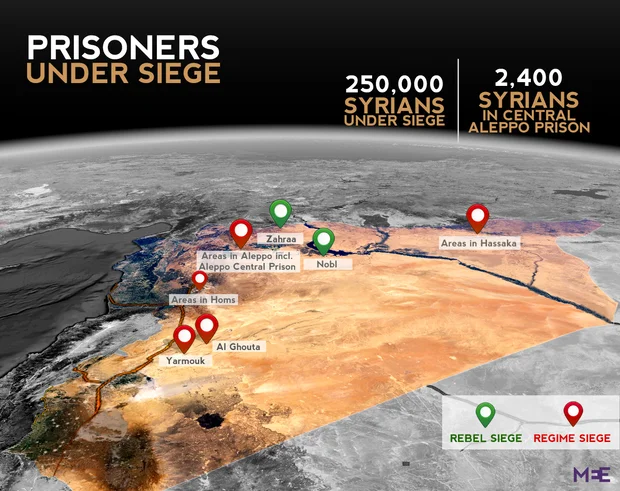 Government forces have imposed a majority of the sieges, but there are at least two villages west of Aleppo which are under rebel sieges, according the report.