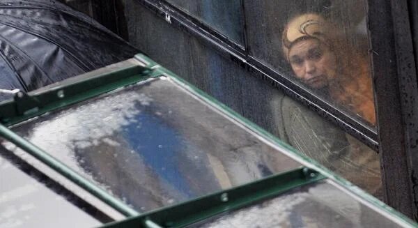 An Algerian woman looks out of a bus window as rain comes down in Algeria (Twitter)