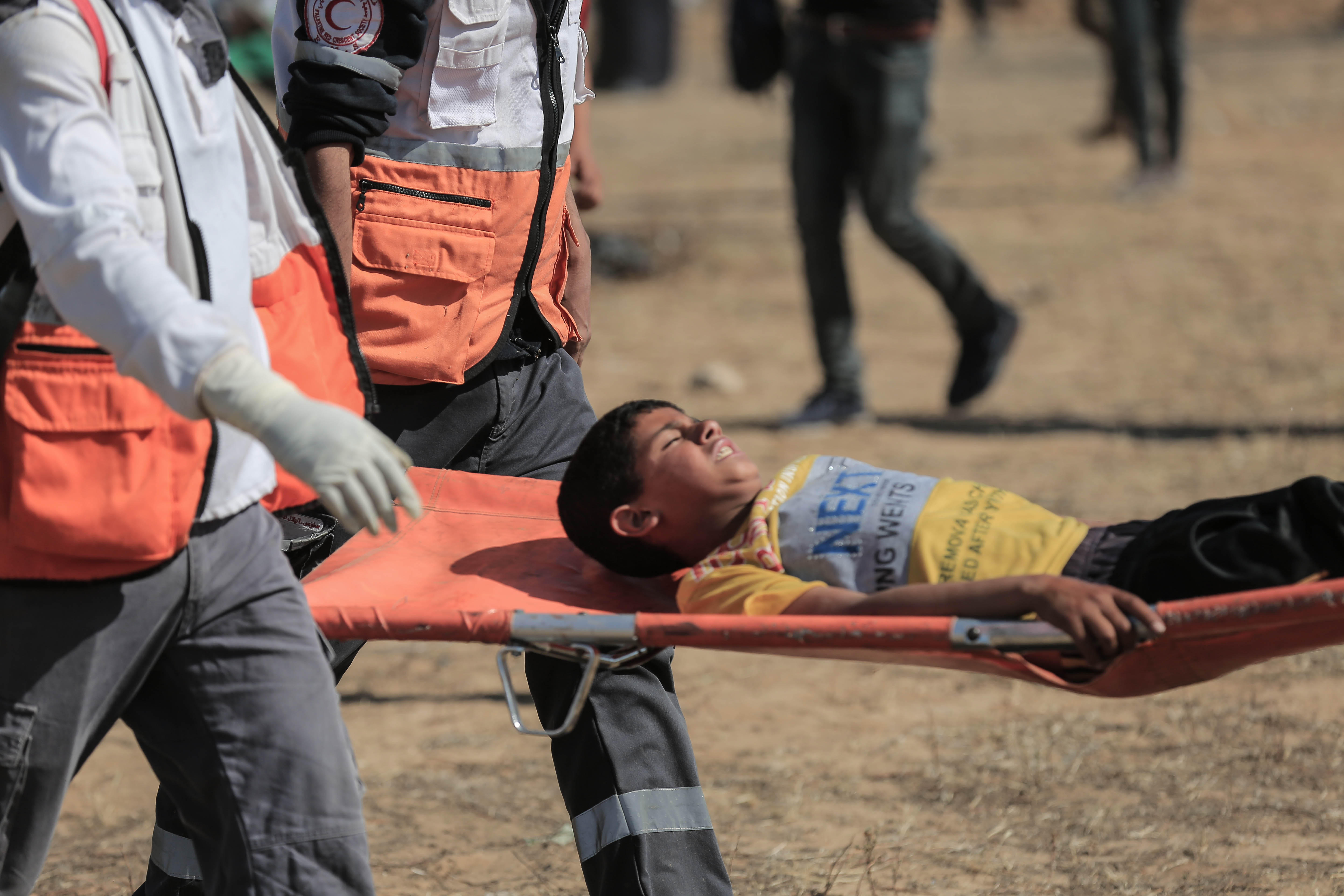 At least 65 protesters were hurt on Wednesday, including 15 who sustained gunshot wounds, the Gaza ministry of health said.