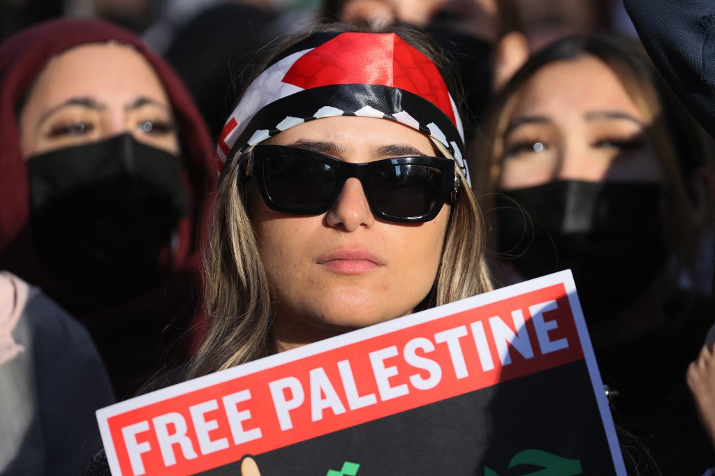 Thousands of people demonstrated outside of a building that houses the Israeli consulate to protest Israeli airstrikes in the Gaza Strip on 12 May, 2021 in Chicago, Illinois (AFP)