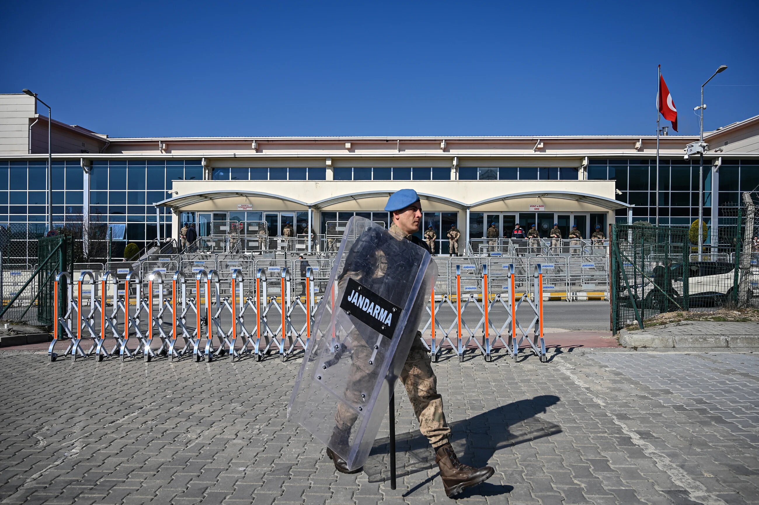 Turkish soldiers stand guard in front of the Silivri Prison and Courthouse complex in Silivri, near Istanbul (AFP)