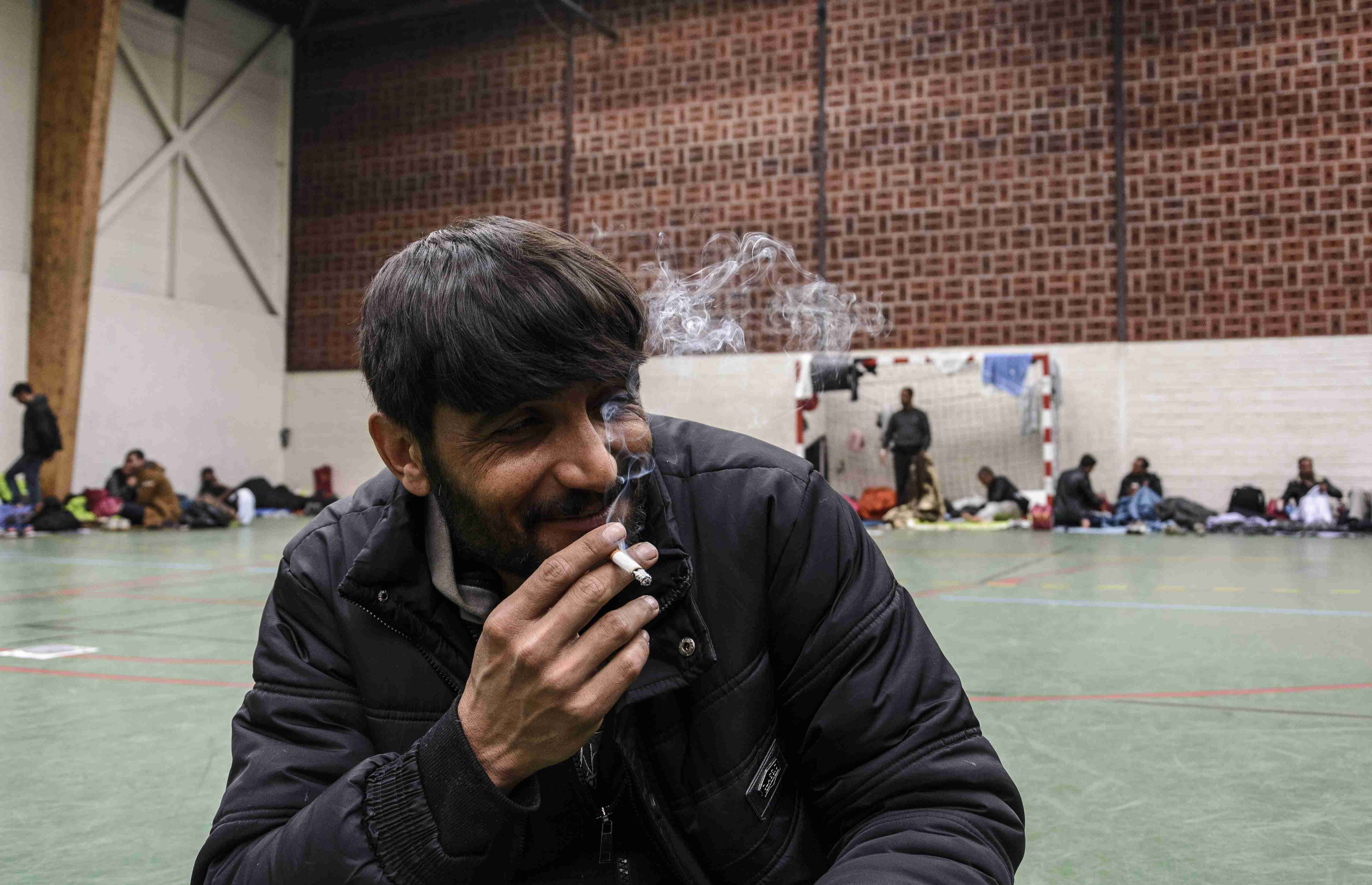 Sayd, an Afghan man in his 20s, is being housed at a temporary shelter in Dunkirk’s Grande-Synthe neighbourhood, one of four gymnasiums allocated by the French authorities. Inside the air is stale and suffocating. Around 150 men sleep on the bare floor. Women and children are housed separately.