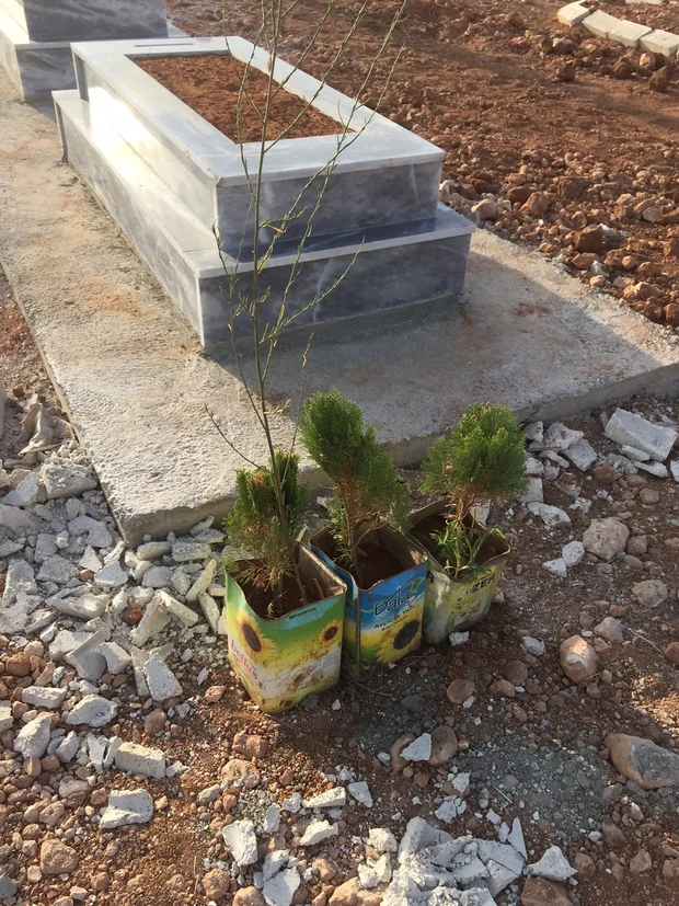 The family’s three unmarked graves form a new row in an expanding cemetery of victims of the four-year-old Syrian civil war. The “martyrs” cemetery for the hundreds of Kurdish soldiers who have been killed in battle against the Islamic State group is nearby.