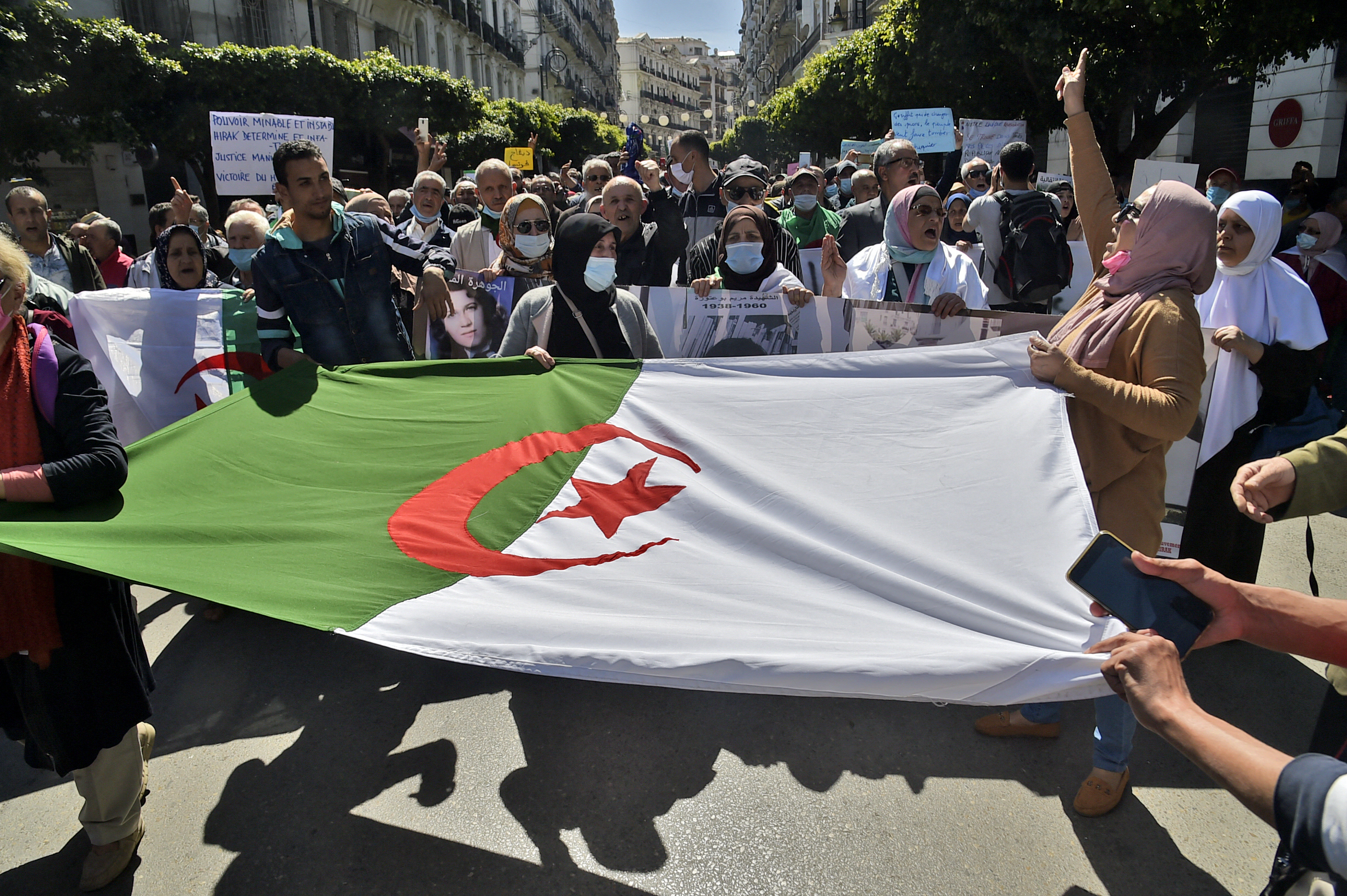 The Hirak pro-democracy movement at their weekly demonstration in Algiers, Algeria, on 26 March 2021 (AFP)