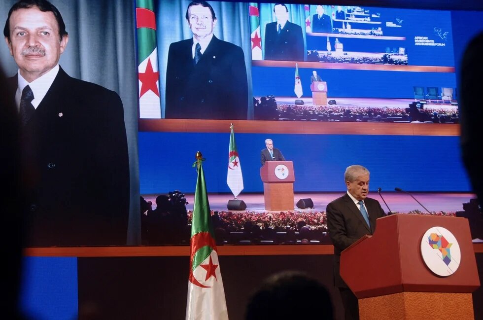 Algerian Prime Minister Abdelmalek Sellal, right, delivers speech in Algiers during opening ceremony of African Investment and Business Forum on Saturday (AFP)