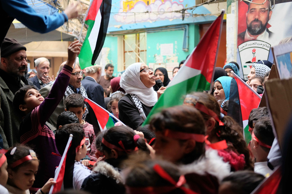 A demonstration in Chatila Palestinian refugee camp in Beirut on 22 December 2017 in support of the UN General Assembly vote to reject the US recognition of Jerusalem as Israel's capital (Dominika Ozynska/MEE)