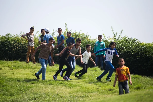 Hundreds of families were sitting on the grass having picnics and enjoying the evening sun. Young men in jeans were chatting with girls in loose-fitting veils.