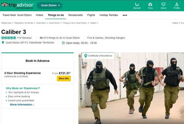 "Take the Shiloh tourist site, for example. Last week a Palestinian was shot and killed by an Israeli settler in the area, which is surrounded by settlements listed by online companies. Tourists will never hear about that."