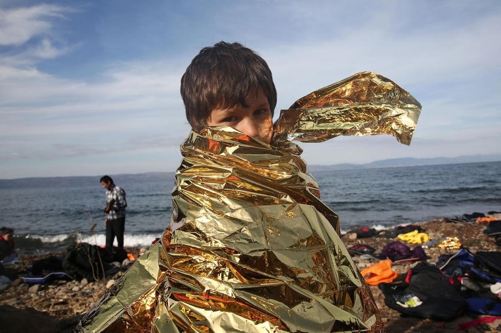 A refugee child arrives on the Greek island of Lesbos (AFP)