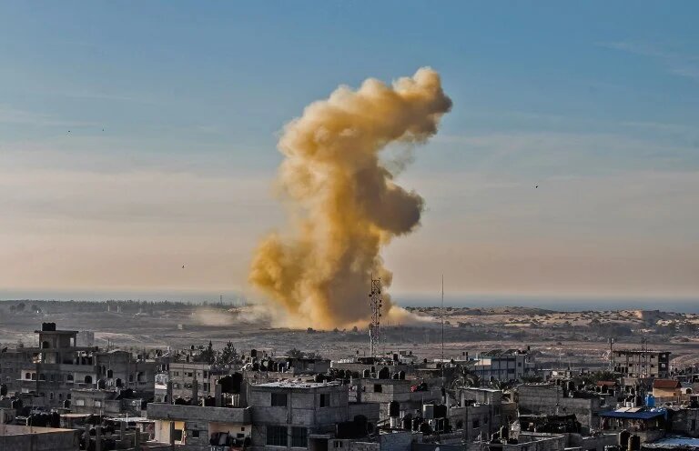 Smoke billows after an explosion on the Egyptian side of Rafah on 28 November 2017 (AFP)