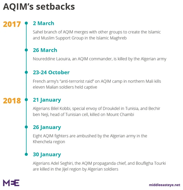 "He was among the 15 most dangerous AQIM fighters," an Algerian security source told Middle East Eye. "Not for his actions in the field but because he was in charge of encrypting and decrypting the information."