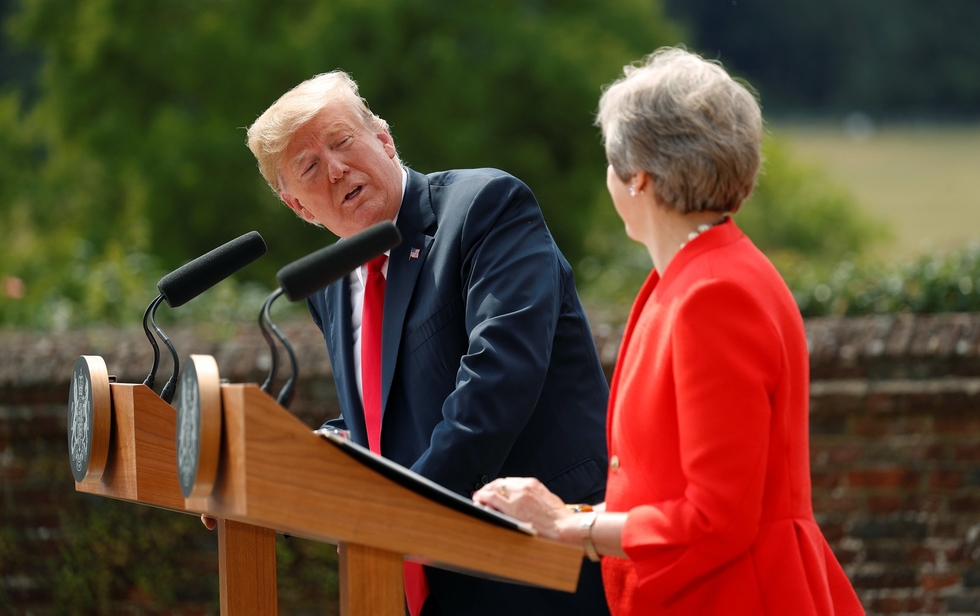Trump and British PM Theresa May at joint news conference on Friday (Reuters)