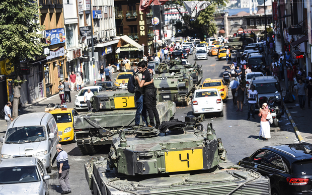 Videos again emerged of civilians taking on military hardware, standing on tanks from which rebels had fled, as the momentum of the coup swung in the favour of democracy.