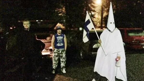 The protesters waved Finnish flags, and one was photographed wearing the white robes and pointed hat characteristic of the Ku Klux Klan, the US-based white supremacist group linked to racist murders by lynching as recently as 1981.