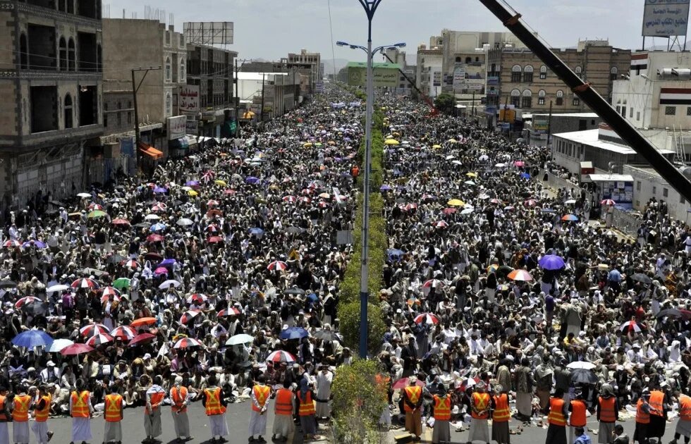 A sea of Houthi supporters and anti-government protesters packed one of Yemen's main roads in the capital to perform Friday prayers and to officially launch the second phase of their campaign to topple the Yemeni government.