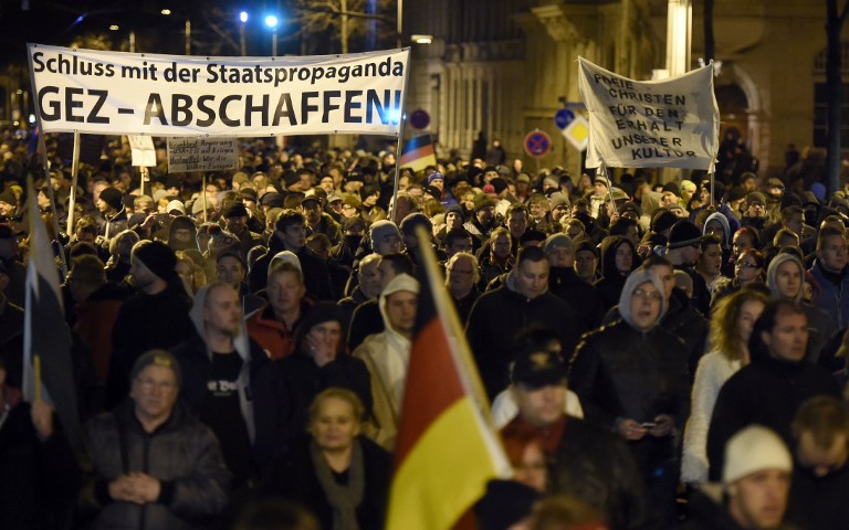 German right-wing populist movement PEGIDA rally in Dresden on 12 January (AFP)