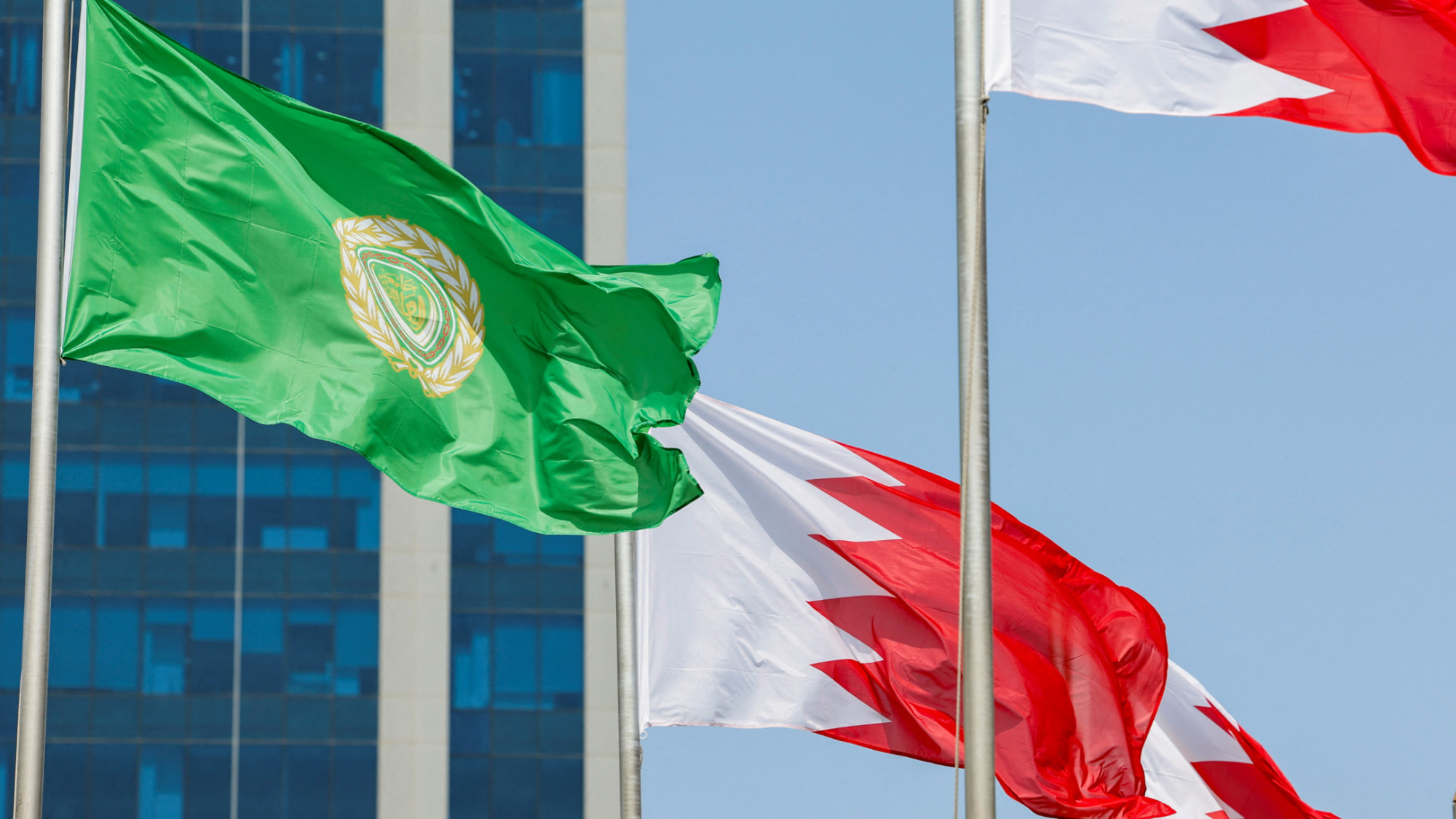 Bahraini and Arab League flags are displayed ahead of the summit, which will take place in Manama on Thursday (Reuters/Hamad I Mohammed)