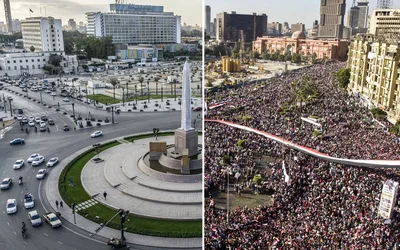 During the Arab Spring, public spaces, such as Cairo's Tahrir Square, came to symbolise the collective voice of demonstrators. Egyptian protesters occupied the square for more than two weeks amid state-sanctioned violence, including attacks by pro-government protesters on camels and horseback. Despite this, demonstrators continued to demand an end to the regime of Hosni Mubarak. On 11 February 2011, their wish was granted.
