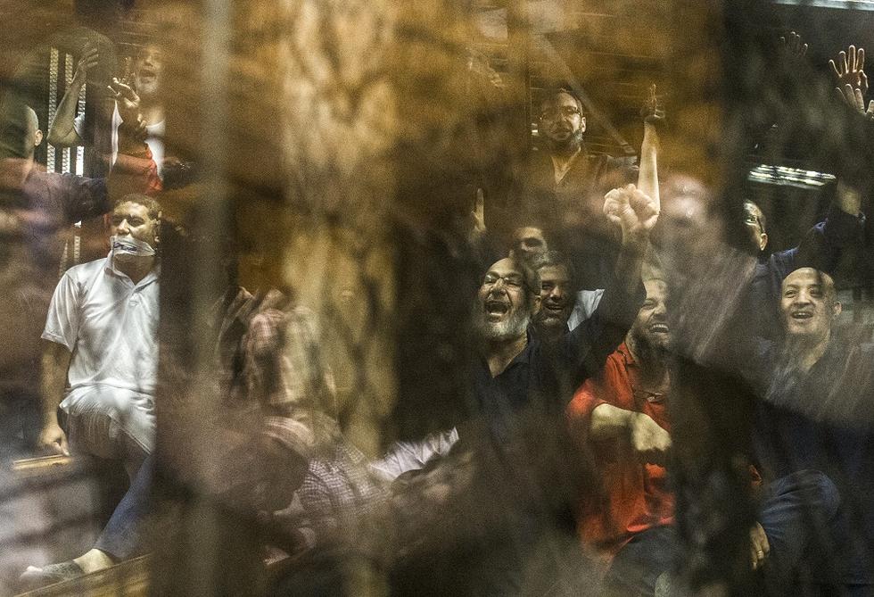 Egyptian prisoners get some air before their trial (AFP)
